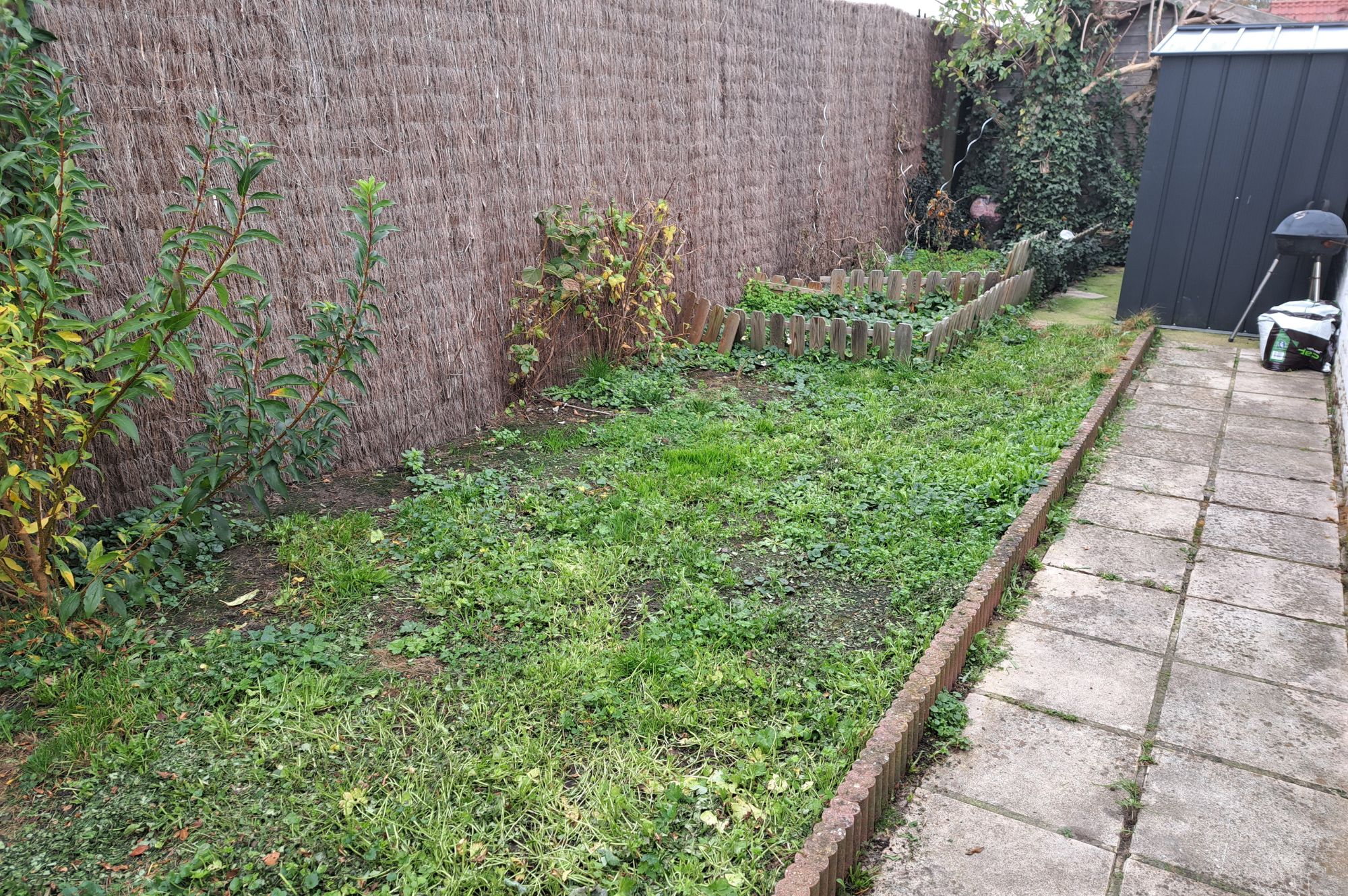 – un joli jardin clos : terrasse, gazon, carré potager et abri de jardin.